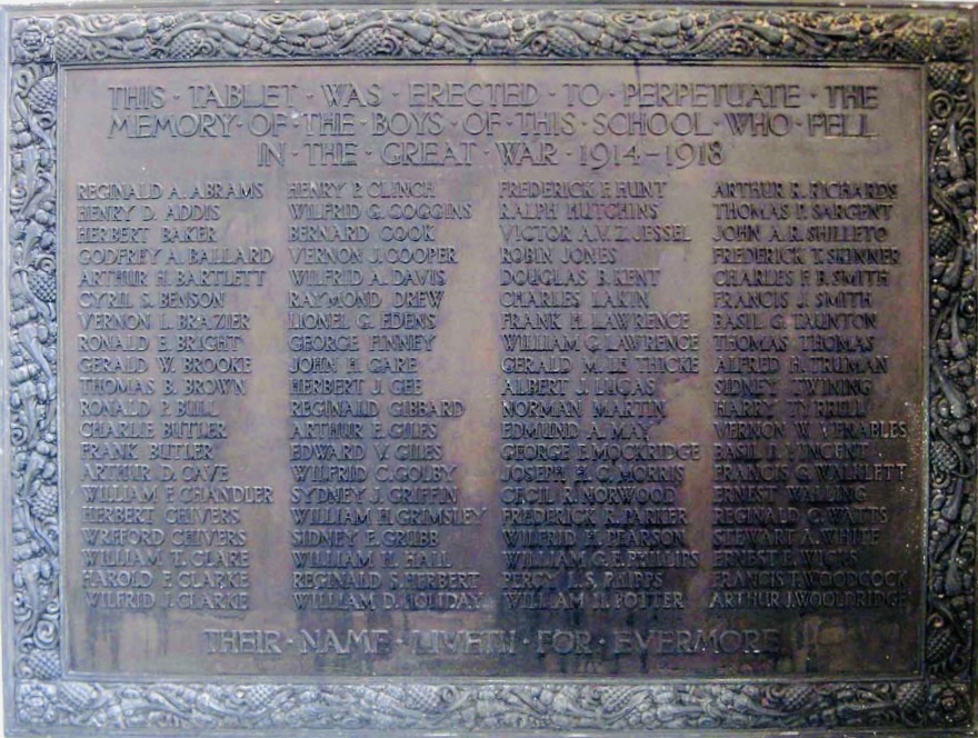 In his somewhat unreliable war memoir written in old age, The Bells of Hell Go Ting a Ling, the OHS old boy Eric Hiscock wrote of his closest school friend Tommy Wheeler, the son of a local butcher who had joined the Royal Naval Air Service and then the RAF and who had survived until November 1918 when he had crashed into the sea not far from Dunkirk. All of the OHS boys of that generation would be aware of friends who had not come back.