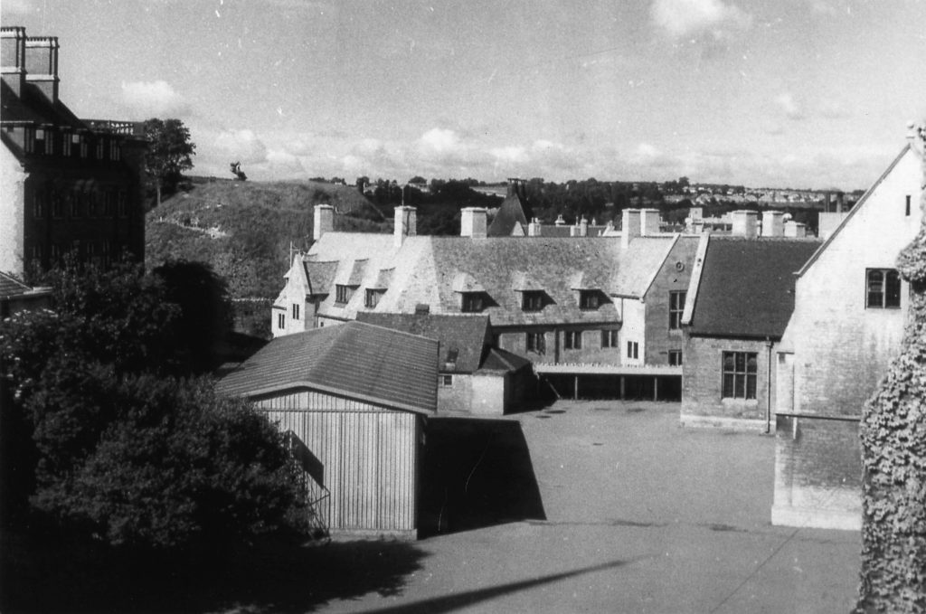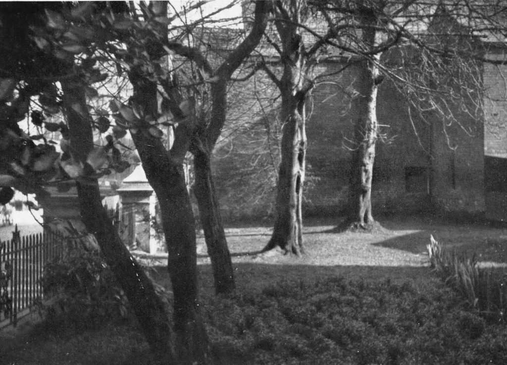The old school front garden to the left of the entrance, the site where the master’s house was supposed to have been built (see the Christmas card below and the last paragraph on this page from the school magazine)