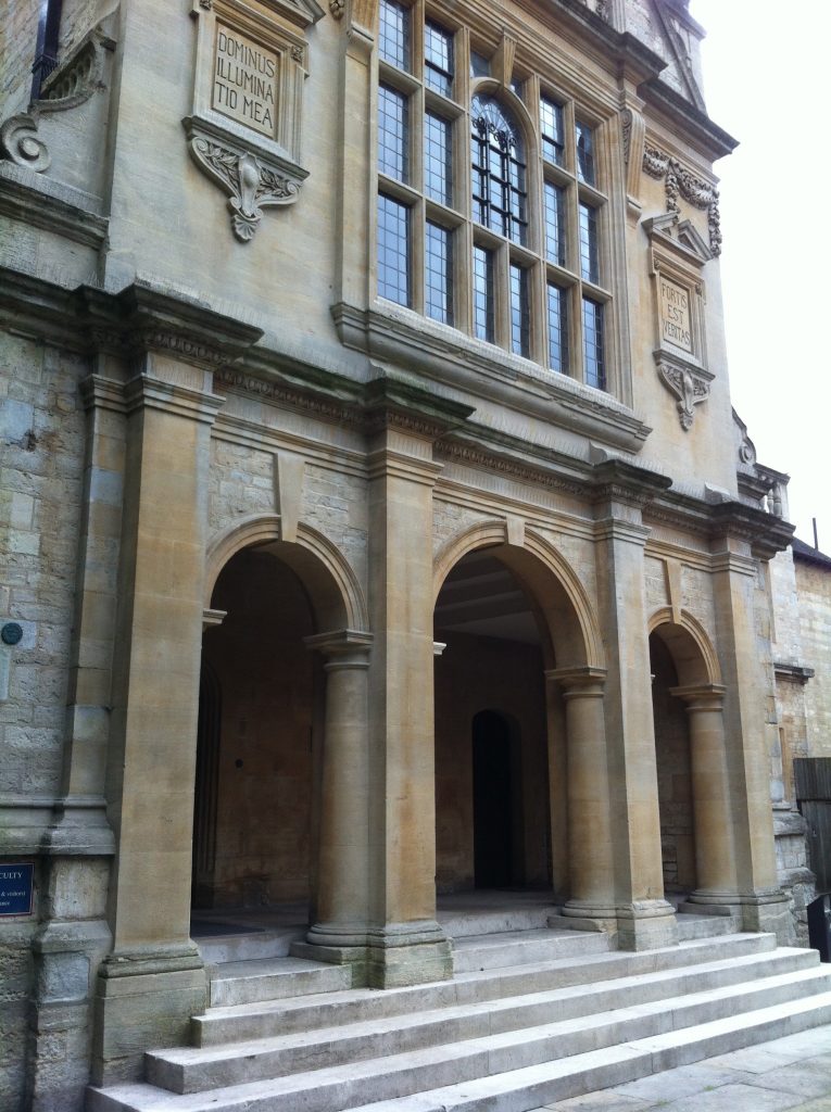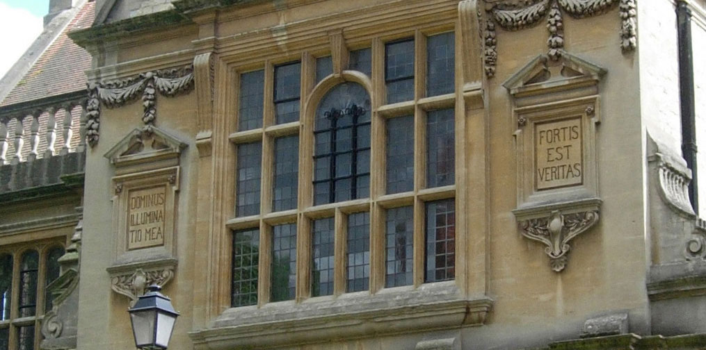 The school mottoes on the stone frontage