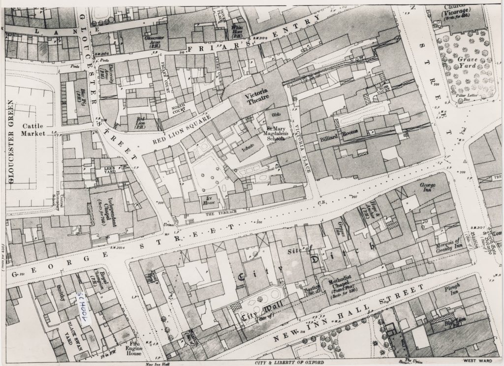 It was clear that the Governors knew what they wanted and intended to give the High School the best building their money could buy. The site had already been given by the Corporation. The gift of the old stone of the City Gaol in Gloucester Green was realised for £170 cash rather than use it. Eight tenders ranging from £8,482 to £7,480 were received; the lowest was accepted from Mr. Charles Claridge of Banbury, to include the Hall, the four classrooms beneath and the two stairways. There were a number of extras to be added including £100 for the carving to the front of the Portico. The Head Master’s house was not proceeded with and Mr. Pollard took boarders in Bradmore Road It was a number of years before the initial overspending was paid off.