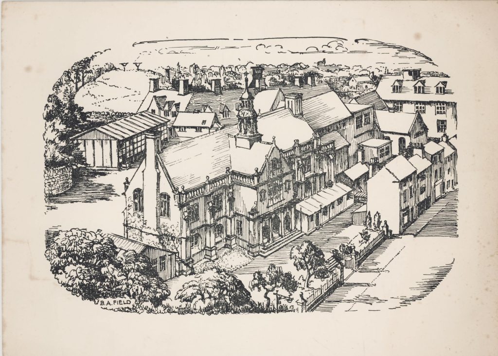 The Proposed School Frontage – the building to the left is the Headmaster’s Lodgings – which were never built